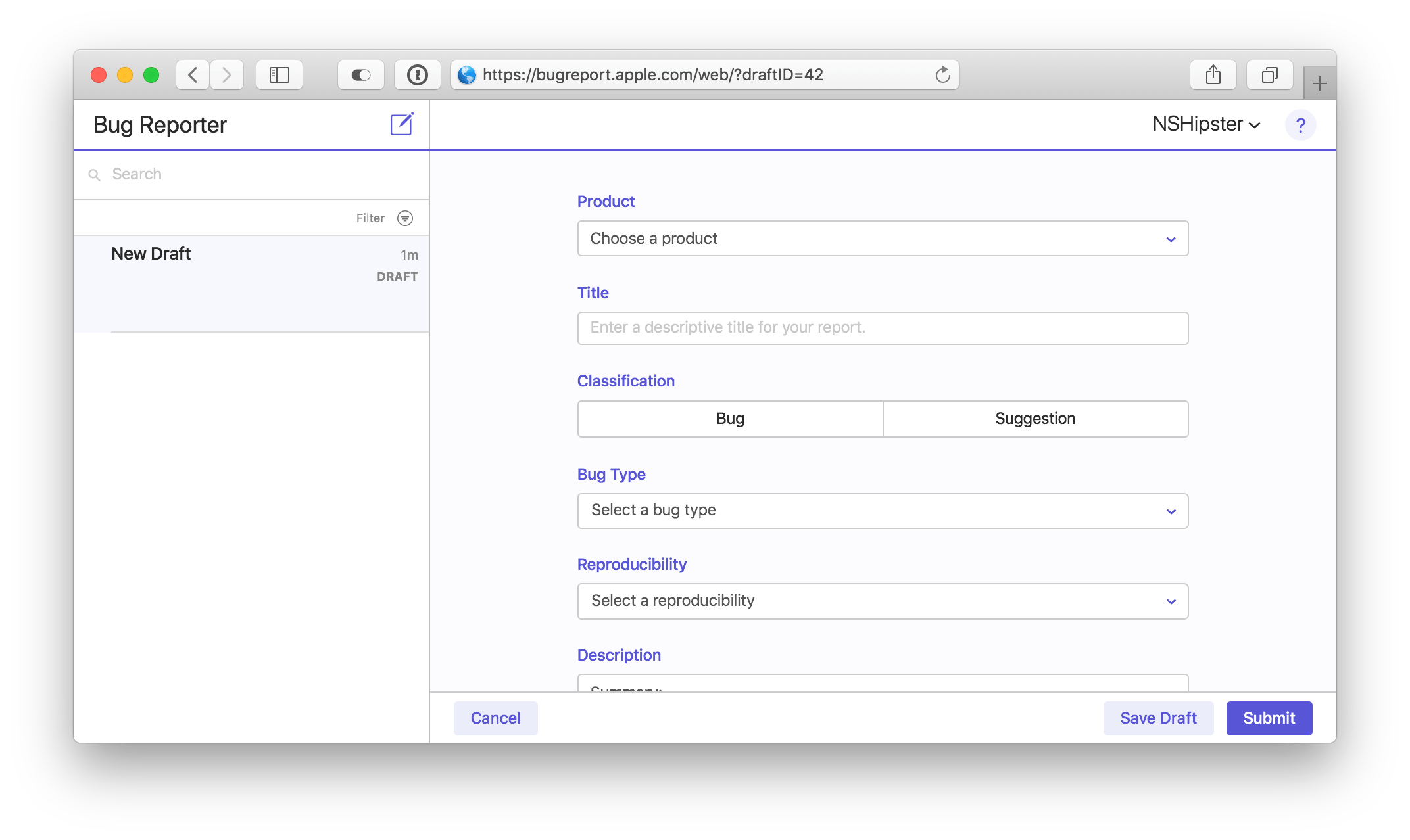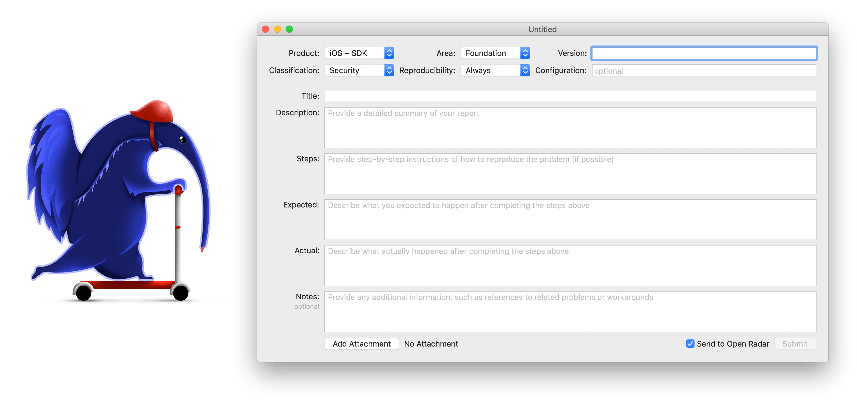 is a macOS app for filing Radars through Apple’s Bug Reporter.