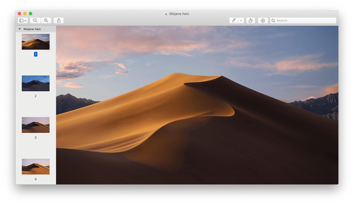 In this directory, you should find a file named “Mojave.heic”. Double-click it to open it in Preview.