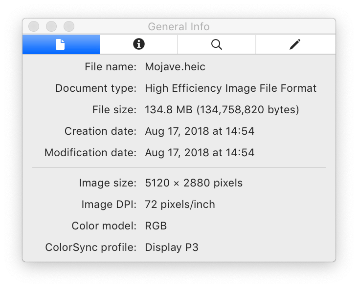 Unfortunately, that’s about all Preview gives us (at least at the time of writing). If we click on the next panel over, “More Info Inspector”, we don’t learn a whole lot more about our subject: